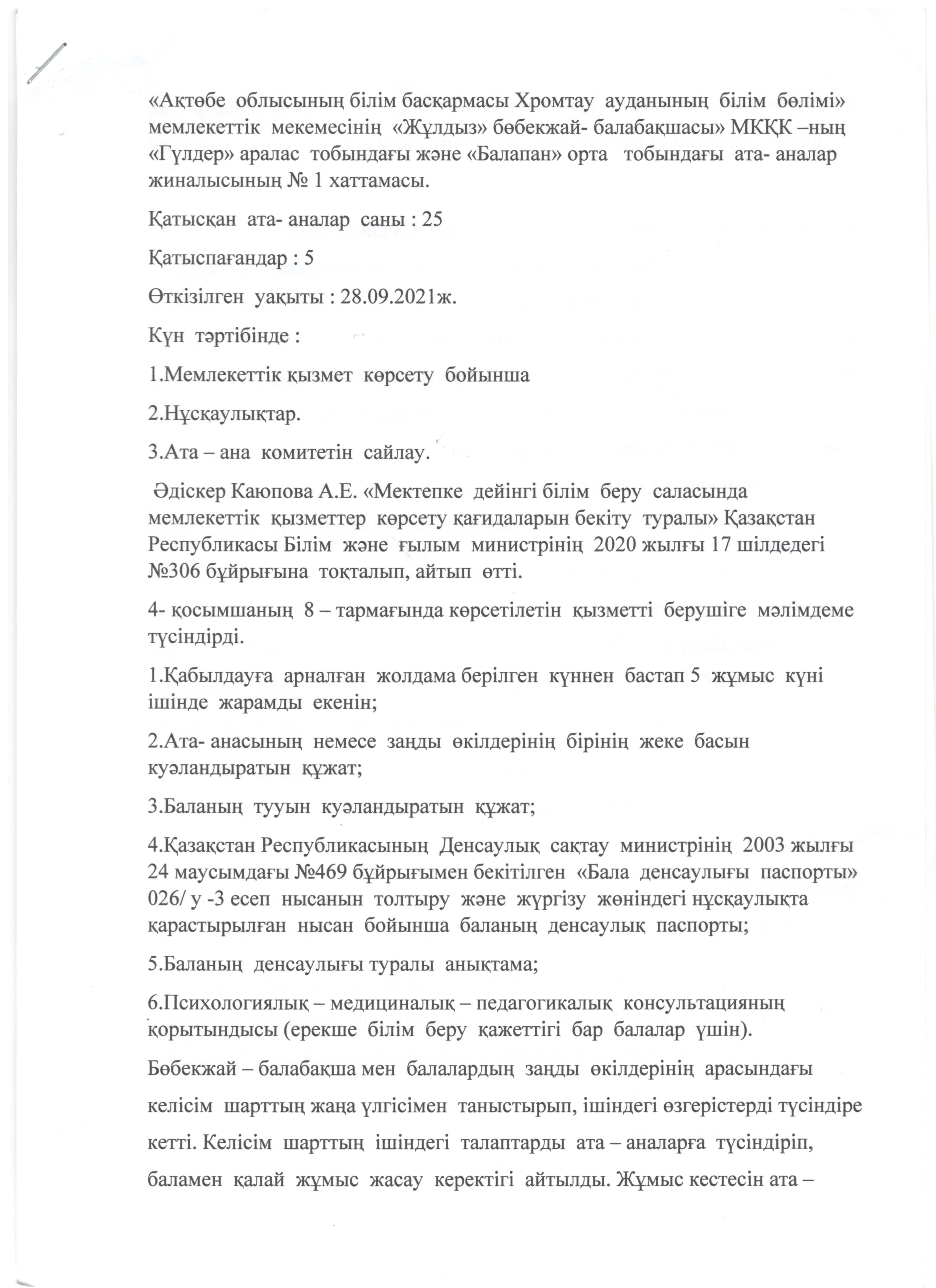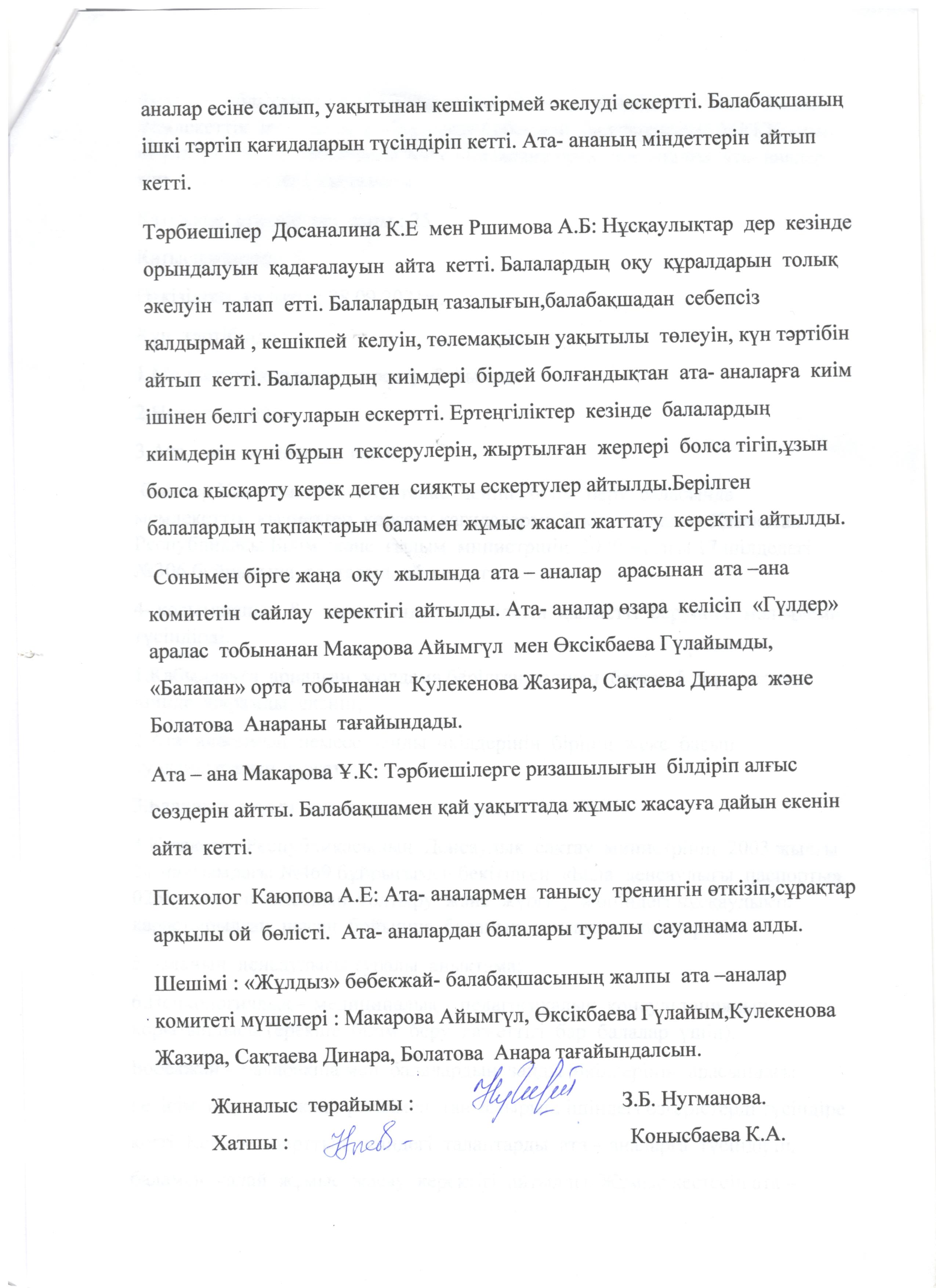 Ата-аналар жиналыс жоспары
