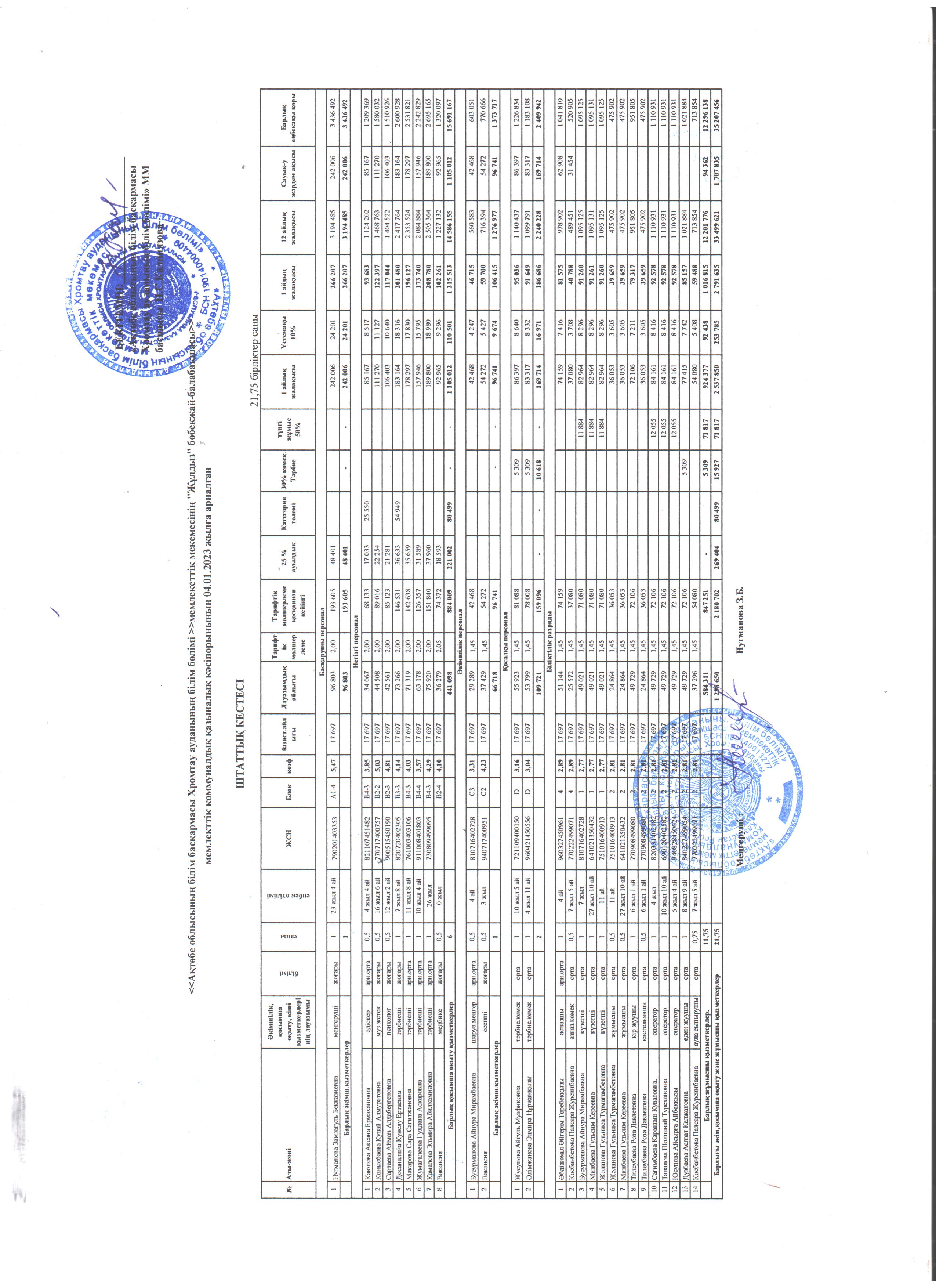 Штаттық кесте
